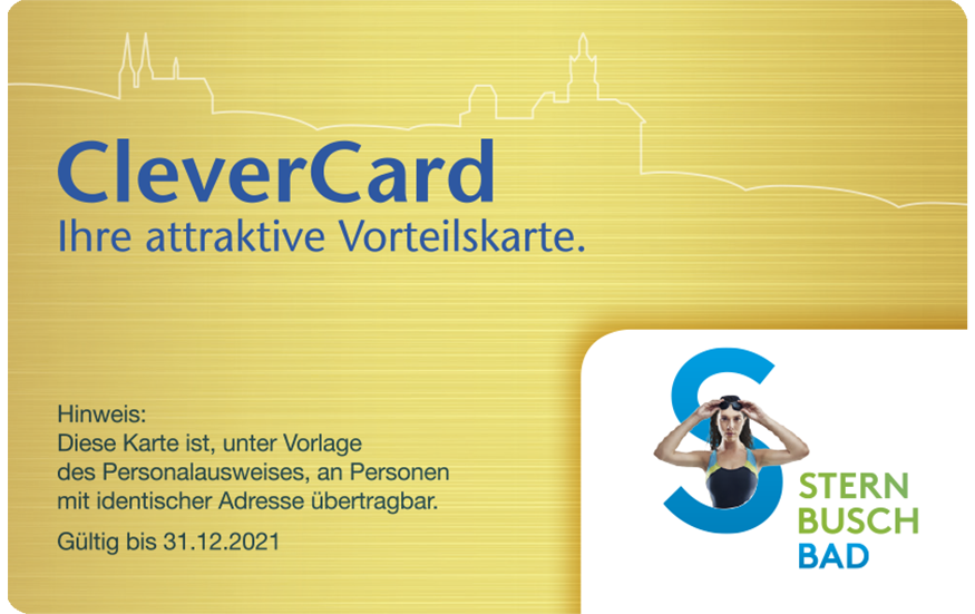 Klanten van CleverStrom2023 en CleverGas2023 van de Stadtwerke Kleve krijgen met de CleverCard 25 % korting op alle toegangsprijzen in het Sternbuschbad.